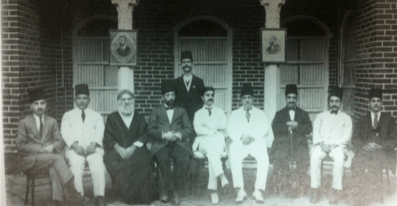 Header-Bild: Zionist activists in Baghdad, 1922. Standing: Dr. Ariel Bension, first from left: Salmān Shīna, third from left:Rabbi Reuben Patia, Wikipedia Eintrag